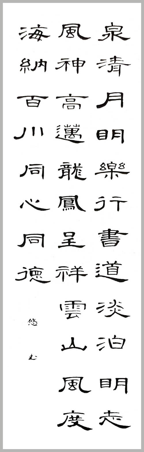 会社員として忙しく日々を過ごす中で、ストレス発散や心が落ち着くことがしたいと当協会にて再び書道を始め、師範を取得。要望に応じた作品作りに努め、想いを書で表現できたらと考えています。